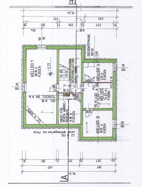 - Keller: ca. 80 m² ( 1 Technikraum, 4 Räume)