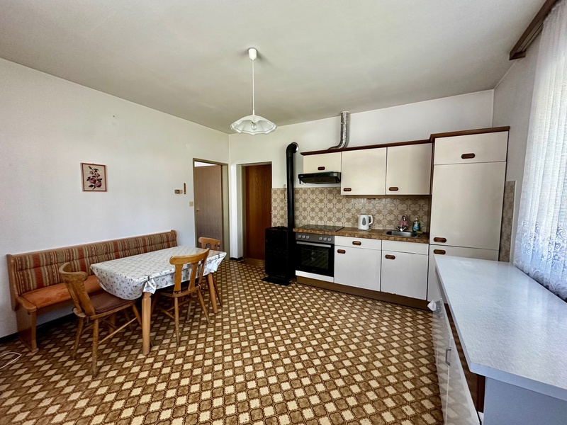 Eine großzügige Wohnküche, welche zusätzlich mit einem CELUS Ofen ausgestattet ist, verspricht gemütliche Wärme, für das familiäre Beisammensein.