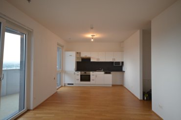 Zur Vermietung dürfen wir eine exklusive 2-Zimmer-Wohnung anbieten, dieses Mietobjekt liegt im 24. Stockwerk und besticht mit seiner wunderbaren Raumaufteilung und selbstverständlich mit der beeindruckenden Fernsicht. Eine neuwertige weiße Edelmarkenküche mit Geräten und Waschmaschinenanschluss stehen zur Verfügung. Die Loggia/Balkon, mit einer Aussenfläche von ca. 14 m², lädt hierzu zur Betrachtung der sagenhaften Sonnenuntergänge Wiens ein.